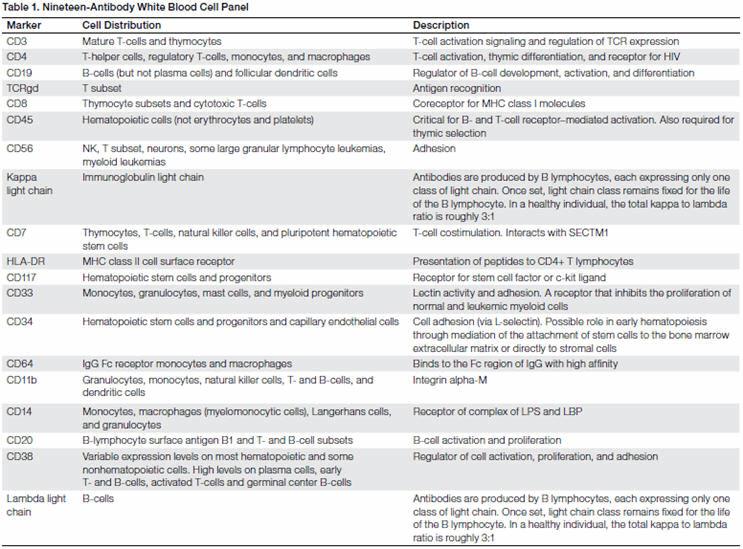A 19-Color Multiparameter White Blood Cell Panel Designed For The Immunophenotyping Of Normal And Malignant Leukocytes By Flow Cytometry