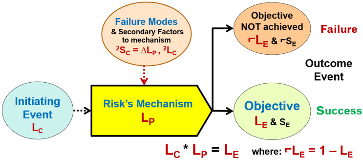 If the risk element in Figure 1 is used to describe a sequence of risk mechanisms such as a chain of procedure steps, then the likelihoods of the sequence equal the mathematical product of the mechanism’s LPs. For example, a risk describe by a sequence of three mechanisms (A, B, & C) has an overall LP = ALP * BLP * CLP.