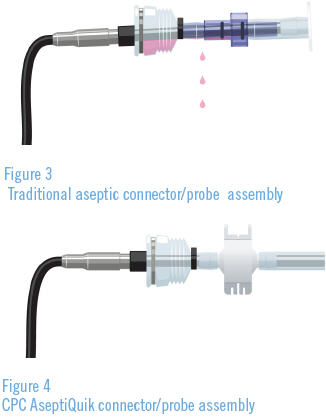 The result is the continued use of traditional sensors, which can be used with both stainless steel and SUS. When using an SUS bioreactor, an aseptic connector is used to connect a traditional sensor that has been sterilized by autoclaving within a probe sheath that envelopes the sensor and maintains the sterility of the probe before insertion into the single-use bag. However, there are issues. For example, media may leak back into the probe sheath or the weight of the probe can bend/stress the seal in the traditional aseptic connector which breaks the sterile barrier around the sensor. This presents risks to the sterility and efficacy of the drug as well as to the costs of manufacturing. This also makes it critical to find a solution that can protect the investment for the lifetime of a product.