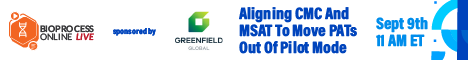 | Join Bioprocess Online Live on September 9 at 11am ET for a Q&A with CMC and MSAT experts about how companies can align their teams to overcome internal barriers and unlock the promise of PATs. Registration is free for this digital event. |