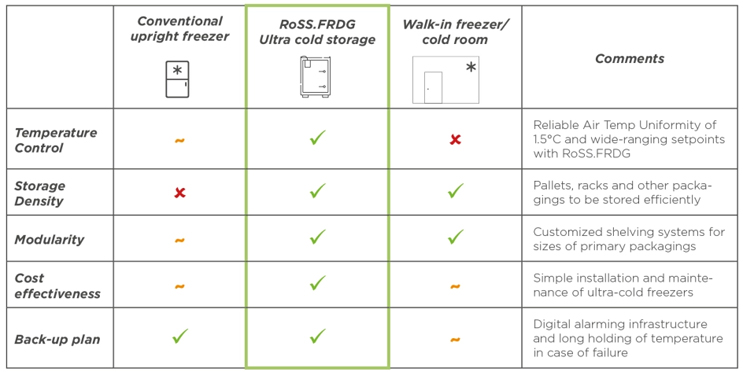 Merging the best of cold storage technologies, RoSS.FRDG outperforms - as illustrated in the comparison table below.