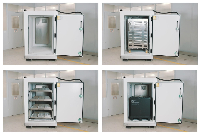- Highest storage density: In case of limited storage room on-site the most convenient way out of scarcity of storage room is to increase storage density. With RoSS.FRDG, multiple single use bags protected in RoSS can be stacked or inserted into different shelving system. Also, one pallet can be placed inside RoSS.FRDG. Upon request, RoSS.FRDG could be stacked itself one over another giving the option to double storage density.