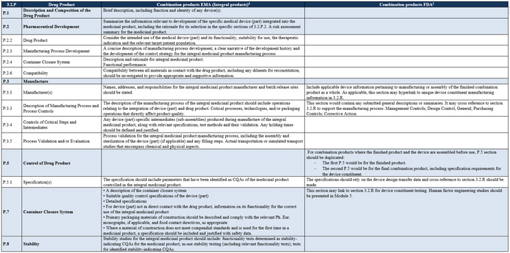 The landscape for regulation of combination product differs between the U.S. and EU, but with the expected information being the same, these differences can be overcome. It is therefore possible to have a harmonized dossier that can be submitted in both regions by including the requested information in Section 3.2.R of Module 3. When using this strategy, it is important to add the proper cross-references to Section 3.2.R in the appropriate Module 3 sections as well as in the reviewer’s guide. Having most of the information in Section 3.2.R avoids reworking the dossier for an EU or U.S. submission, allows more flexibility for submissions outside of these regions where the product will not necessarily be regulated as a combination product, and facilitates post-marketing activities by limiting the number of sections that need to be updated.