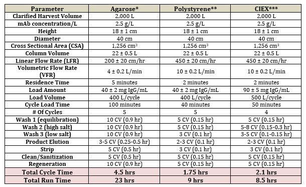 Table1. mAb Capture Step Comparison of Soft vs. Rigid Resin vs. CIEX (rigid resin)