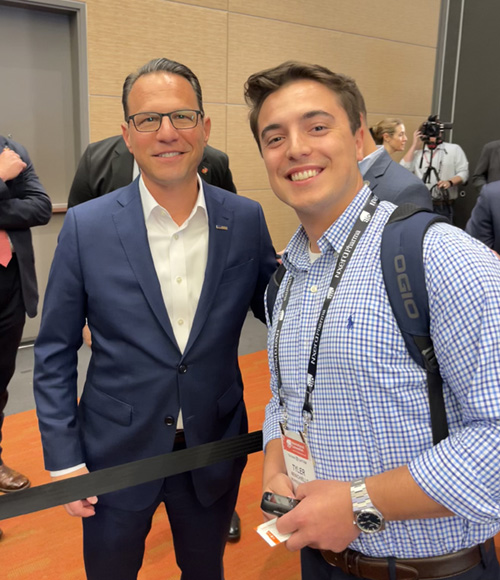 Governor Josh Shapiro (left) With Bioprocess Online's Chief Editor, Tyler Menichiello (right)