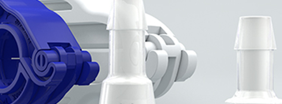 Pharma+ tubing retainers are engineered to secure tubing on hose barbs easily, featuring a lead-in ramp that provides full 360° compression, ensuring a tight seal and preventing leaks.