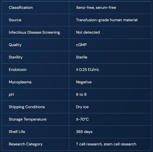 - Proven Serum Replacement: Drive desirable CQAs at superior or equivalent levels to FBS and human serum in both T cells and stem cells.