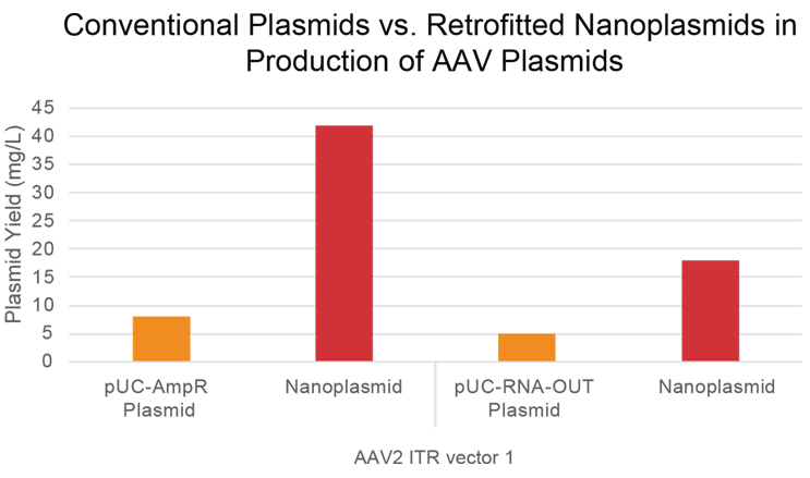 Using Nanoplasmid for AAV production can improve plasmid yields with greater ITR stability during manufacturing via the proprietary host strain.