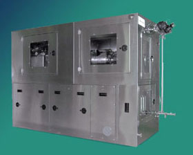 With the aid of the dual synchronous intensifier pumping system, the product is kept flowing at high velocities and near constant pressure through the patented fixed geometry interaction chamber, resulting in shear forces intense enough to reduce particles and droplets to sub-micron sizes with narrow and uniform distribution, usually in a single pass.