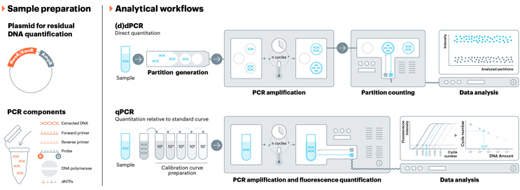 USP is developing analytical reference material that can be used for the assessment of residual plasmid DNA. This reference material will be composed of linearized plasmid DNA that contains both the ampicillin resistance and kanamycin resistance (NeoR/KanR) genes. These regions are common target regions for residual plasmid PCR methods. The USP standard will be well characterized via multiple analytical methods, including dPCR. This reference material can be used as either a standard curve calibrant in qPCR assays or as a positive control in either qPCR or dPCR assays.