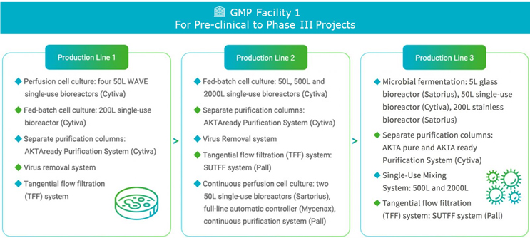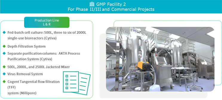 The innovative design of our multi-product GMP facilities allows for capacity and technological flexibility while ensuring strict compliance with biopharmaceutical regulations required for GMP operations. Our dedicated and experienced technical teams are committed to delivering high-quality products rapidly and cost-effectively.