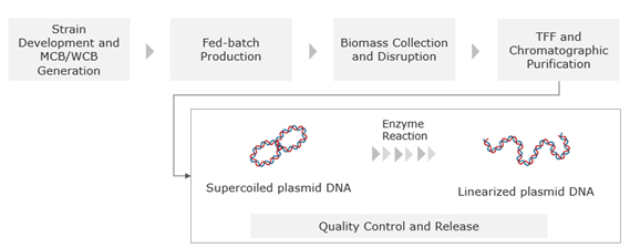 At Mycenax, our microbial team is dedicated to providing solutions for plasmid DNA manufacturing, including long terminal repeat (LTR)-containing plasmids, such as lentiviral plasmids, etc., for gene and cell therapy developers. Leveraging our dedicated microbial lab and GMP microbial production line, we are capable of offering plasmid manufacturing services for projects in pre-clinical, IND application, and clinical phases.