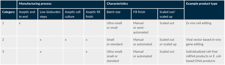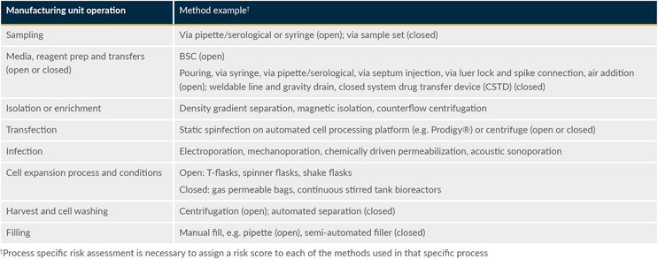 Table 2: ATMP production process category examples. Click on image to enlarge.