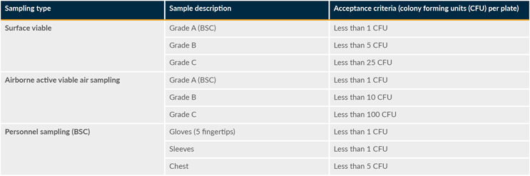 Table 3: EMPQ acceptance criteria. BSC is “biological safety cabinet.” Click on image to enlarge.