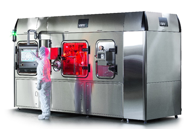 Singota Solutions implemented one of the latest advancements in filling technology systems, the Vanrx SA25 Aseptic Filling Workcell. This unit takes advantage of the RTU component formats and utilizes a more efficient isolator process. The use of pre-sterilized components in standardized tubs has enabled the use of new material handling approaches. The SA25 is an innovative manufacturing workcell that utilizes robotics for fully automated component handling, filling, stoppering, and capping integrated within an isolator.