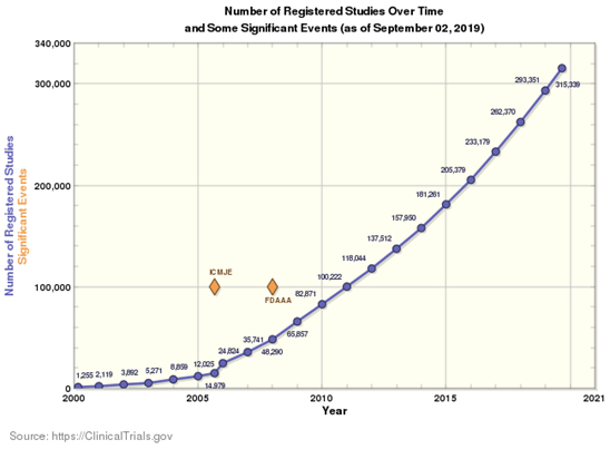 As seen by the graph from the U.S. National Library of Medicine, there has been a steady increase in the number of drugs in phase 1 and 2 clinical trials, resulting in more demand for clinical-stage manufacturing. Of the studies launched in 2018, 46% were approved based on data from trials with fewer than 500 subjects in total.