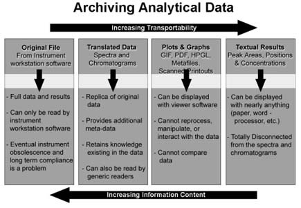 Figure 2 - There are trade-offs between the level of information content and transportability of data when using different storage representations for analytical instrument measurements.