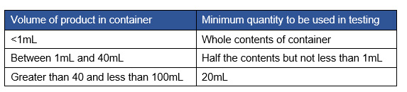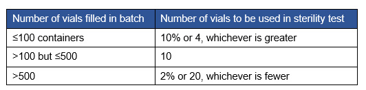 Table 1: Sterility testing requirements based on filled vial volume