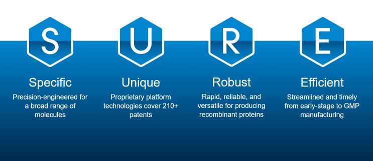 The SUREtechnology Platform is designed to overcome common expression bottlenecks in cell line development. Through advanced gene technology, our platform streamlines the development process from transfection to a fully-characterized research cell bank (RCB).