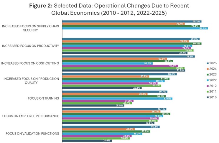 BioPlan’s longitudinal data shows that cost reduction and productivity have consistently ranked at or near the top of the list since 2014. What was once discussed as continuous incremental improvement initiatives is now treated as an operational baseline.