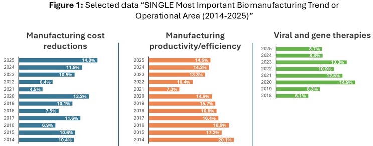 More than a century later, this principle still resonates in bioprocessing. It reminds us that financial discipline is not about cutting corners. It is about building facilities and businesses that support quality, reward people, and ensure sustainability. In 2025, the survey data shows the same truth: Cost and productivity together remain the disciplines that underpin long-term competitiveness.